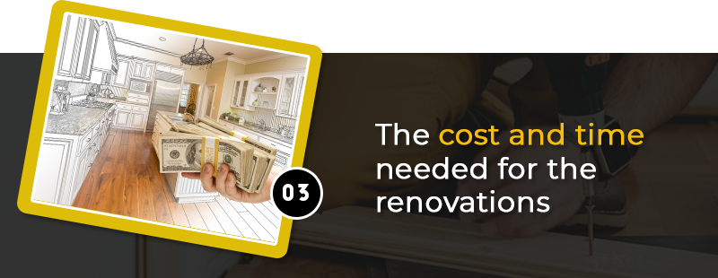 When deciding whether or not to renovate your home before you sell, another thing you need to do is to carefully weigh the cost, time, and workload needed for the potential renovations. Because despite any thorough planning and budgeting, costs could run higher than what you may have initially anticipated.
